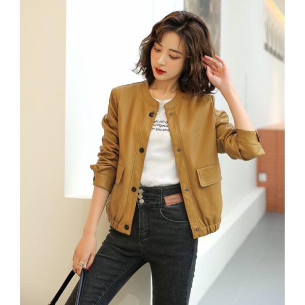 ノーカラージャケット レザージャケット レディース アウター ジャケット 革ジャン フェイクレザー ショート丈 大きいサイズ 3L 4L 5L 6L 春 秋冬 20代 30代 40代 50代 シンプル きれいめ カジュアル ブラウン ブラック イエロー 春物 秋物 春アウターレディース
