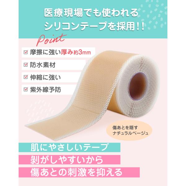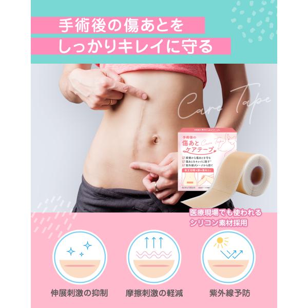 【手術後の傷あとをしっかりキレイに守る】肌にやさしいシリコンテープ採用