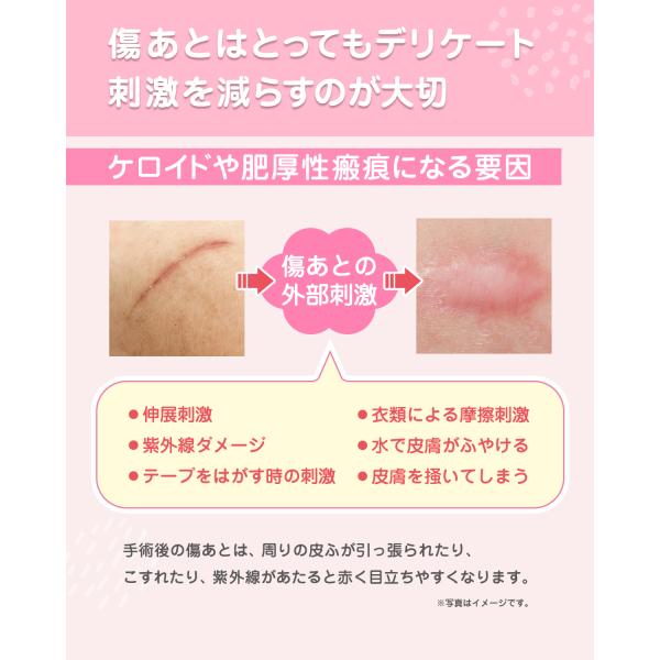 【摩擦刺激の軽減】衣類や下着のこすれから傷あとを守ります。