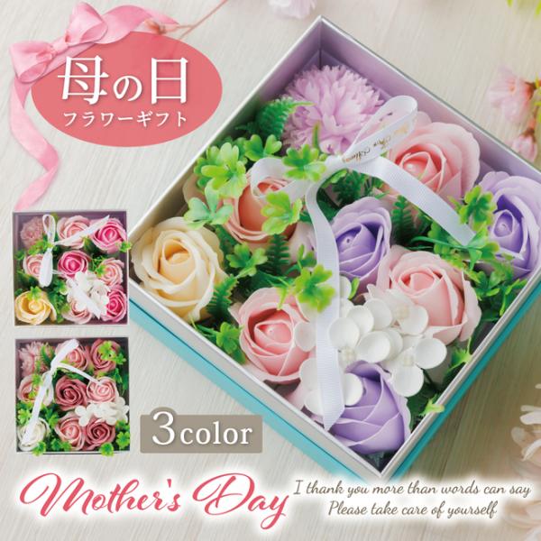 母の日 ソープフラワー プレゼント ナチュラルフラワーで日頃の感謝を ソープ フラワー 箱入りギフト 16cm×16cm ギフト プレゼント