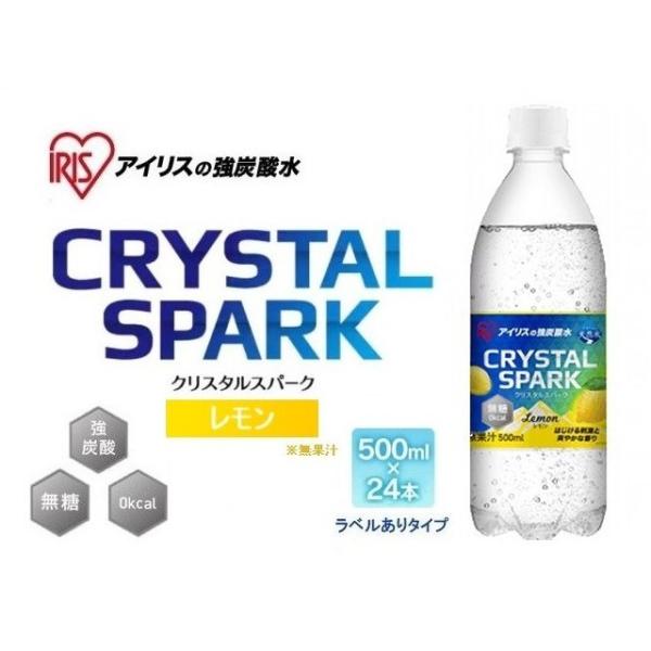 ラベルあり アイリスの強炭酸水 CRYSTAL SPARK クリスタルスパーク レモン 500ml×24本 無糖 0kcal アイリスオーヤマ IRIS OHYAMA 4562403570468