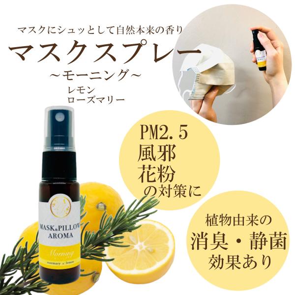《マスク&ピローアロマ》【モーニング】20ml レモン ローズマリー 朝用 スッキリ 風邪 花粉 消臭 静菌 アロマスプレー 目覚まし 勉強 お得 フィルター