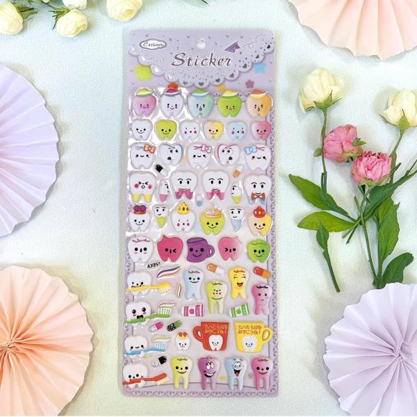 【 ぷくぷく ぷっくり デンタル シール 】 3D 歯 歯医者 歯磨き 歯ブラシ 虫歯 歯科 小児歯科 歯科医院 ドクター 衛生士 子ども キッズ ご褒美 カラフル 顔