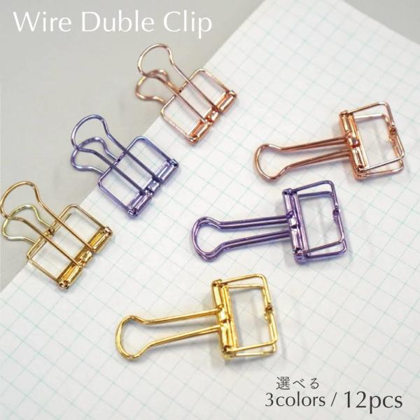 【 ワイヤー ダブル クリップ 】 12個 メタリック ゴールド ピンク パープル ペーパー アイテム バインダー 事務 文房具 メモ ラッピング かわいい おしゃれ 紙