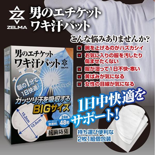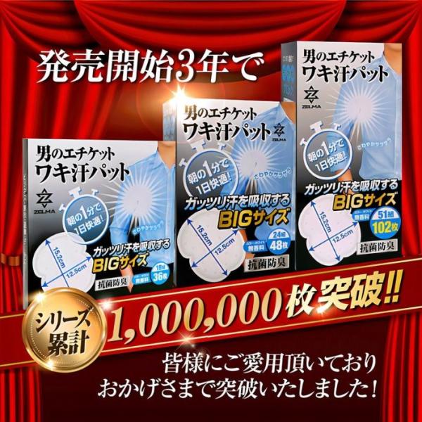 脇汗パッド メンズ 汗脇 汗取りパット インナー (国内検査5種合格 雑誌掲載) 102枚 汗脇パッド 抗菌防臭 大判 無香料 ZELMA