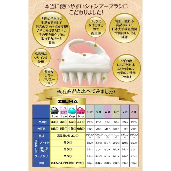 シャンプーブラシ 毛穴汚れや頭皮マッサージに スカルプケア オーソドックスタイプ 国内検査合格 上質シリコン フックにかけられる Aタイプ ZELMA