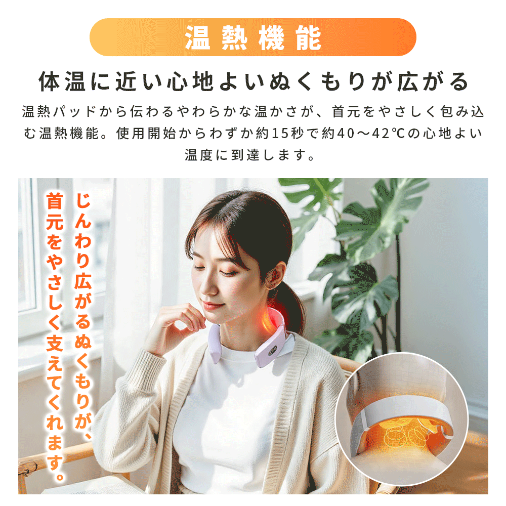 首・肩を、毎日10分//EMS×温感で、ガチガチ首に深く届く