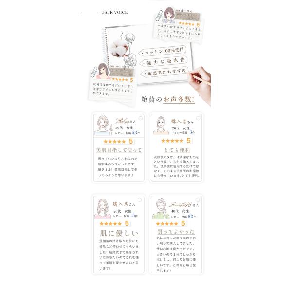 毎日のクレンジングや洗顔後の顔拭き、スポーツ時の汗拭き、お掃除のふきん代代わりなど、様々なシチュエーションでご利用いただけます。