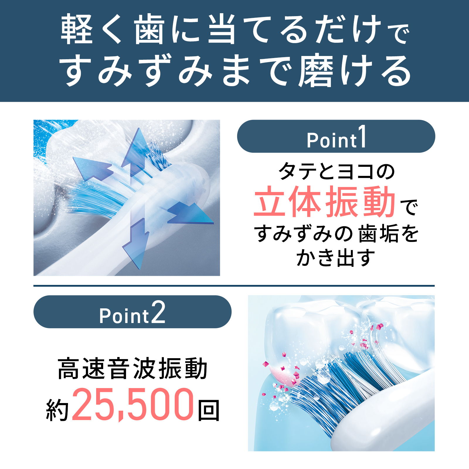 オムロン 公式 音波式電動歯ブラシ HT-B318-W ホワイト 軽量約46g 替えブラシ2本付き 音波式 充電式 ナビタイマー搭載
