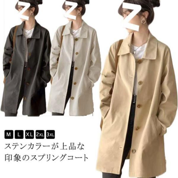 通勤 ミドル丈 レディース 全4色 秋 ステンカラーコート ロングコート スプリングコート トレンチコート アウター 春 春コート ライトアウター シ