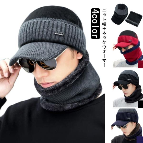 つば付きニット帽 ニット帽 ネックウォーマーのおまけ付き ニットキャップ 2点セット メンズ レディース ニット つばつき つば付 ニット帽子スノーボ