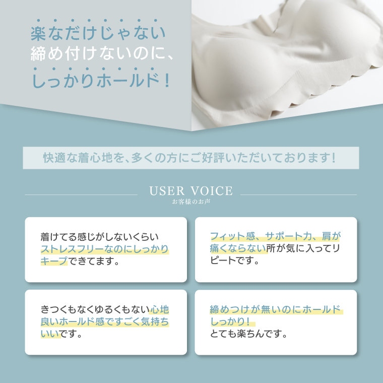 締めつけ感のないシームレスデザインで、まるで何も着けていないような軽やかさ。