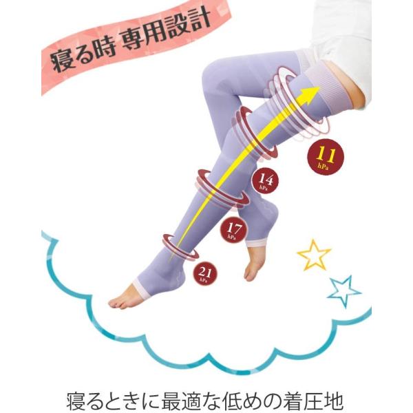 ・人体工学に基づいたデザインで着圧なのに履きやすい。パジャマ・ナイトウェアにもぴったりのラベンダー、ジェラートカラー。抗菌防臭加工。