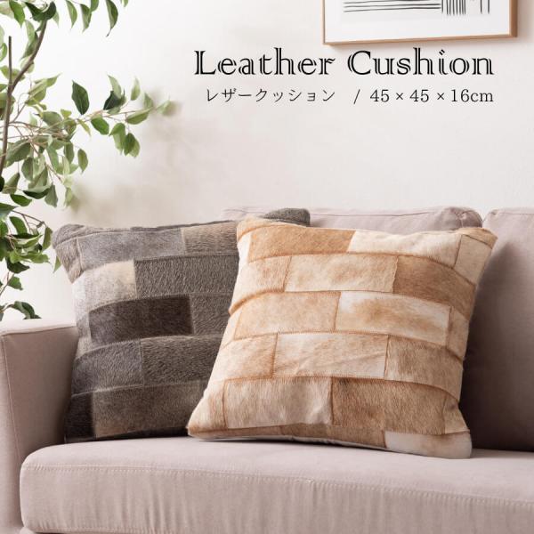 クッション 本革 レザークッション おしゃれ 北欧 正方形 かっこいい インテリア 牛革 パッチワーク シンプル ナチュラル 完成品 FAB-102