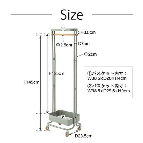 ハンガーワゴン スリム おしゃれ ハンガーラック シンプル 収納ボックス付き キャスター付き ワゴン コートハンガー 収納 シンプル Sylph PW-55