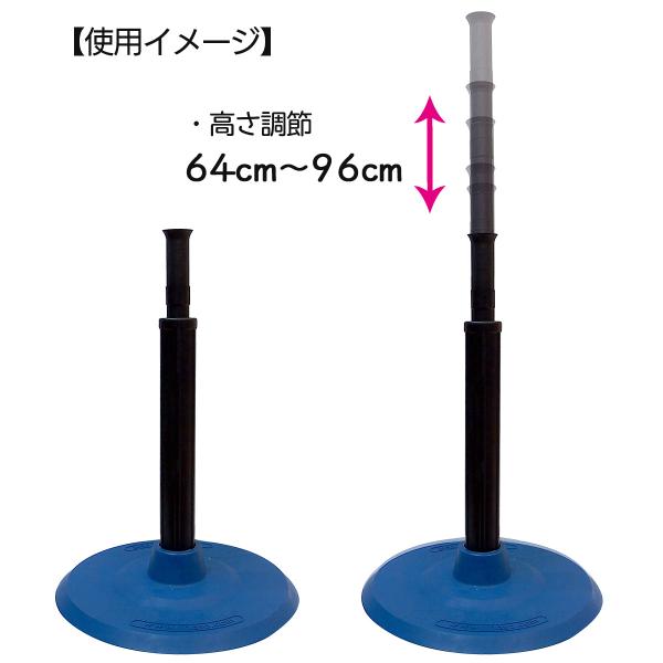 基本の高さ調節は64cm〜96cmまで。別売りのローヒッティングチューブをセットすることで高さ43.5cmの低めコース設定も。