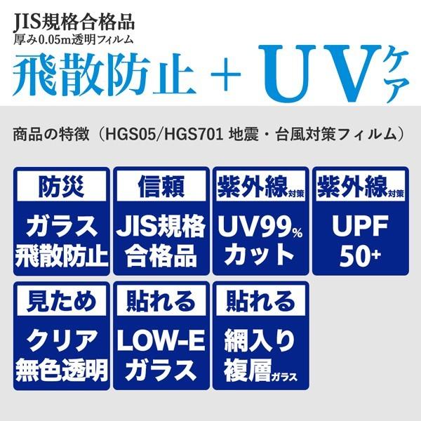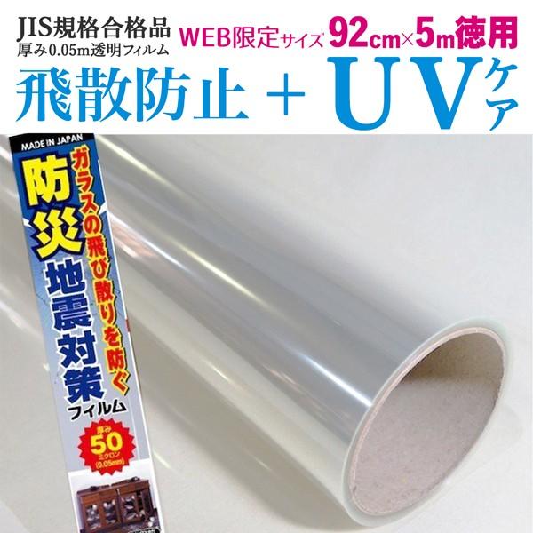 窓ガラス 飛散防止フィルム JIS 防災 UVカット シート 透明 50μ 5m 徳用 台風対策