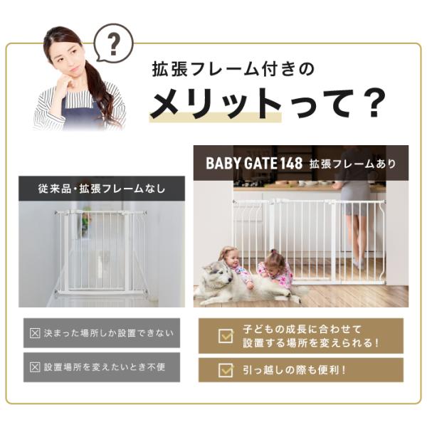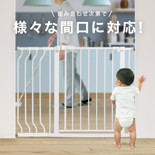 ベビーゲート 拡張型 76〜148cm 拡張パーツ3枚付き ホワイト 突っ張り ベビーゲイト ベビーサークル スイングドア キッズ 赤ちゃん用品 キッチン 玄関 階段下 柵