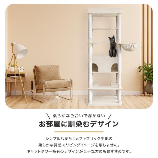 キャットタワー SLIMOA 173cm キャットタワースタジアム 猫タワー 猫 猫用品 据え置き 爪とぎ 多頭飼い 落下防止柵 頑丈 ハンモック 猫ハウス