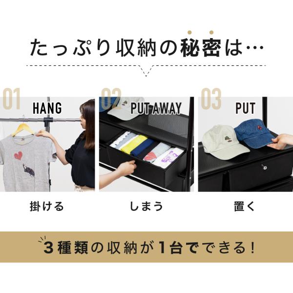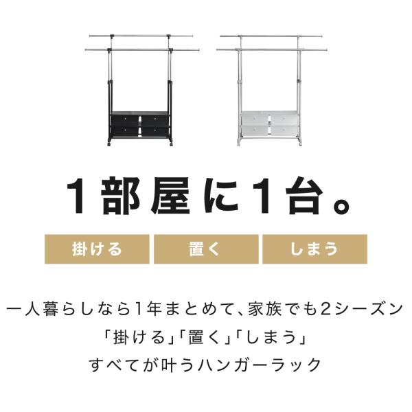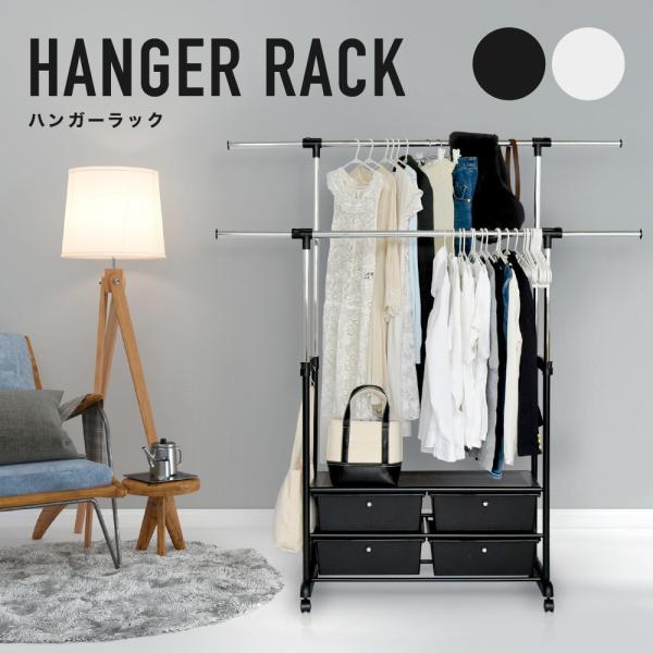 ハンガーラック 4チェスト付き ラック クローゼット ワードローブ ウォールラック 物干し チェスト 部屋干し 一人暮らし 収納 引き出し ディスプレイ 小物入れ