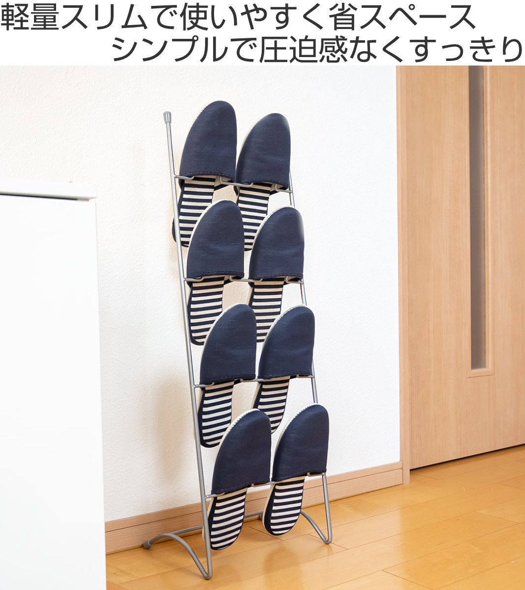 ●スリッパ4足を収納可能。厚みのあスリッパもかけられます。