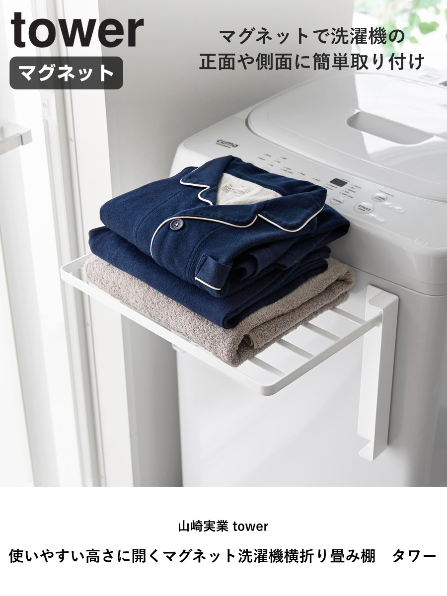 ランドリー 一時置き 洗面所 磁石 有効活用 洗濯機 ラック 4903208100205 yamazaki towerシリーズ 山実 YAMAZAKI 山崎 やまじつ 白 黒 無地 スタイリッシュ ホワイト ブラック 棚 収納 トレー 使いやすい高さに開く おしゃれ シンプル 折り畳み式の棚 省スペース 洗濯機ラック 折りたたみ スリム 着替え タオル置き サニタリー収納 洗面用品 洗面グッズ 洗面収納 LH16690 LH17957 LH9589
