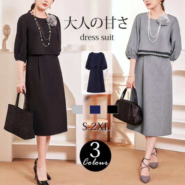 セレモニースーツ 長袖 フォーマルスーツ ツイード ワンピーススーツ 大きいサイズ フォーマル ママスーツ 体型カバー 結婚式 お出かけ