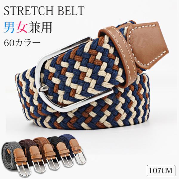 男女兼用 メッシュベルト メンズ レディース フリーサイズ 伸縮 編み込み ストレッチ ビジネス カジュアル 紳士 スポーツ 穴あり