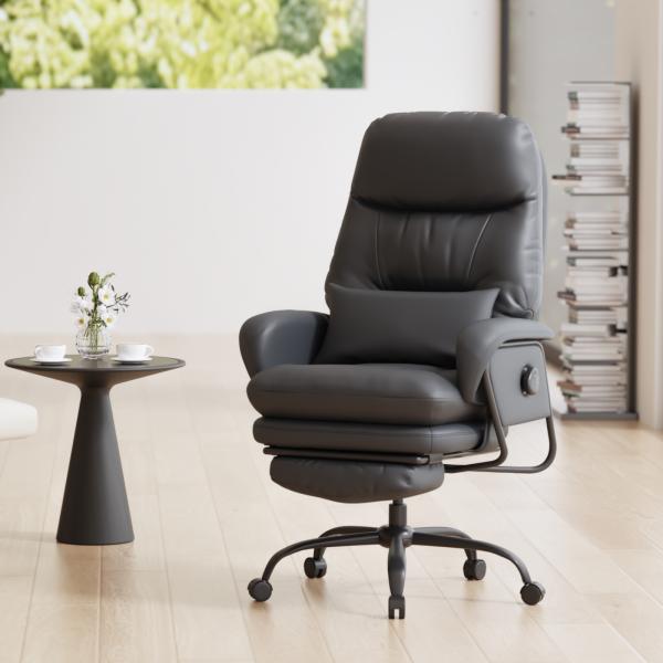 FlexiSpot オフィスチェア デスクチェア HC4 ソファチェア 4段階固定 PUレザー 座り心地 肉厚クッション 社長椅子 腰当て付き 収納可能なオットマン 爆買