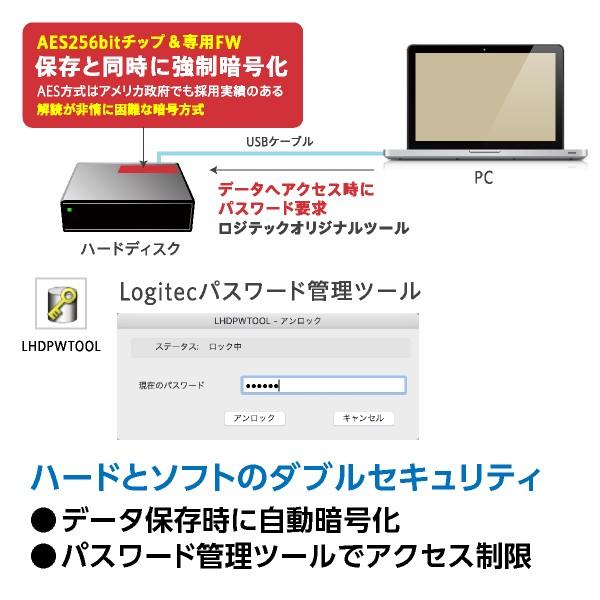 最高レベルの暗号化機能(AES256bit)およびLogitecオリジナルパスワード認証ツールにより、