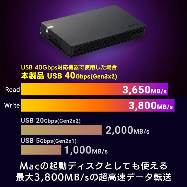 SSD 外付け 2TB 超高速転送 USB40Gbps USB4対応 ポータブル R:3,650MB/s W:3,800MB/s USB スティック PS5 LMD-PBT020U4CBK