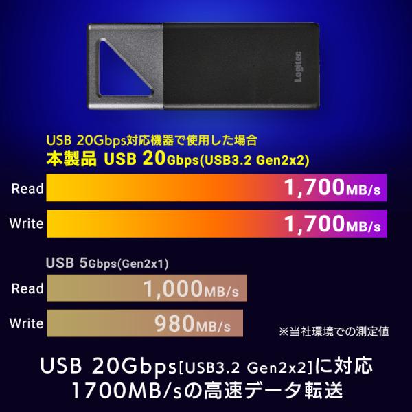 SSD 外付け 500GB ポータブル iPhone USB HDD スティック Type-C PS5 高速 R,W:1700MB/s USB20Gbps 耐衝撃 防塵防滴 LMD-PBV050UC