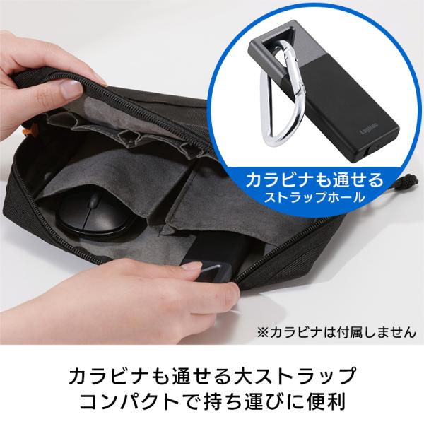●大きめのストラップホール付きでカラビナを通すことができ、持ち運びに便利。