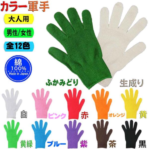 大人用カラー軍手 国産 綿100% カラー軍手、女性用 男性用 手袋(全12色)軍手 カラー手袋 運動会 イベント 即日発送