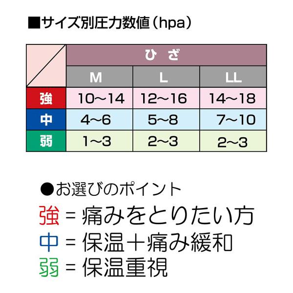 ・用途に合わせて3種類の着圧(弱・中・強)が同サイズから選べます。