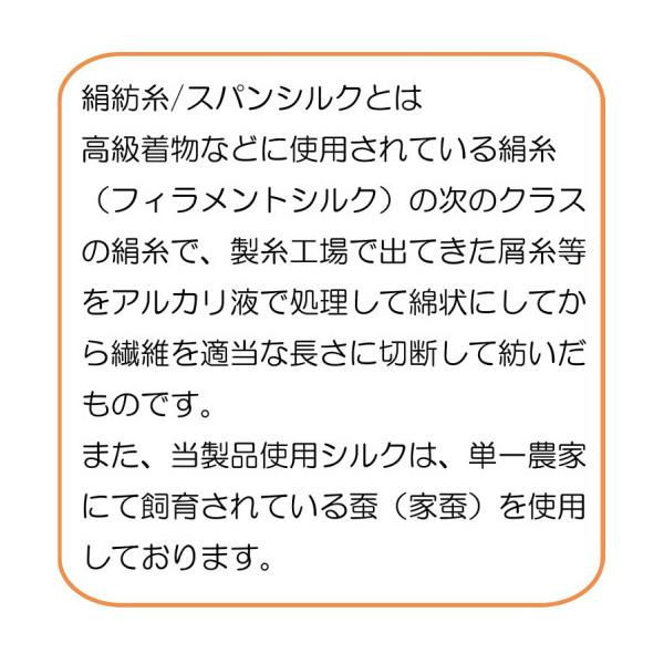 また、当製品使用シルクは、単一農家にて飼育されている蚕(家蚕)を使用しております。