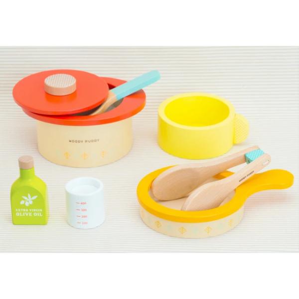 はじめてのおままごと おなべ&フライパンセット ウッディプッディ 木のおもちゃ 煮込んで焼いてよそって遊べる G05-1214 WOODYPUDDY 出産祝い プレゼント A倉庫