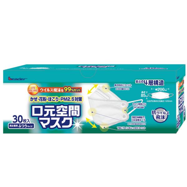 医療用マスク 不織布立体4層構造でウイルス飛沫 PM2.5をブロック!リーダー 口元空間マスク 医療用 日本産業規格 JIS T9001 クラスII 適合 日進医療器 B倉庫