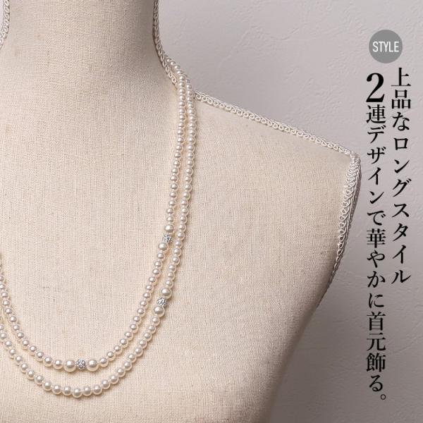 パールネックレス 2連 ロング レディース 結婚式 卒業式 入学式 上品 アジャスター付き フォーマル カジュアル 普段使い アクセサリー