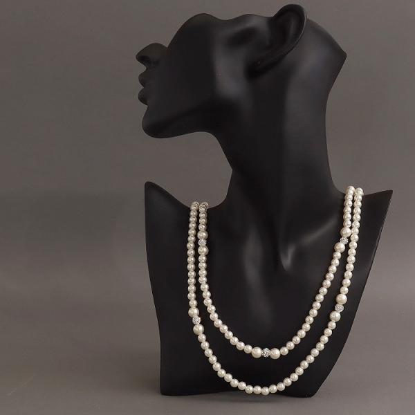 パールネックレス 結婚式 入学式 フォーマル 卒業式 3way ガラスパール 2連 ロングネックレス パーティーネックレス マグネット留め具 謝恩会 成人式 発表会