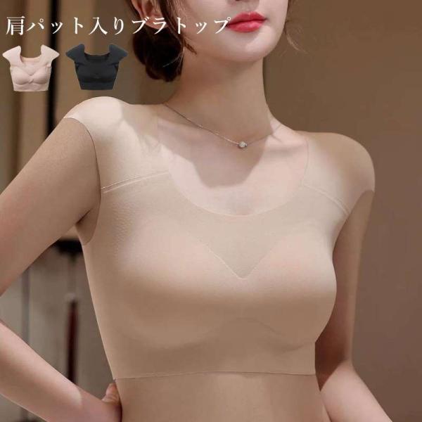 ブラトップ レディース 肩パット付き なで肩カバー カップ付き インナー シームレス 響かない 美シルエット ストレッチ
