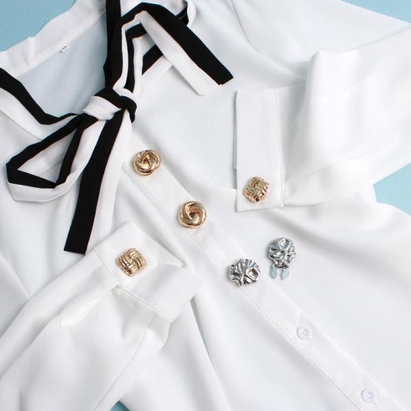レディース ボタンカバーカフス アクセサリー 2個セット 4タイプ展開 シルバー ゴールド シャツ ブラウス ボタンパーツ 留め具 プレゼント ギフト