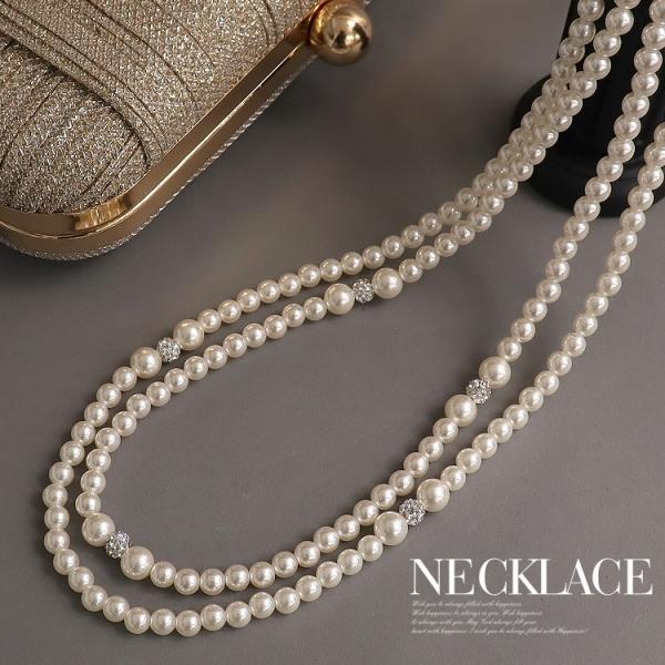 パールネックレス 2連 ロング レディース 結婚式 卒業式 入学式 上品 アジャスター付き フォーマル カジュアル 普段使い アクセサリー