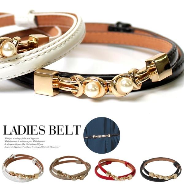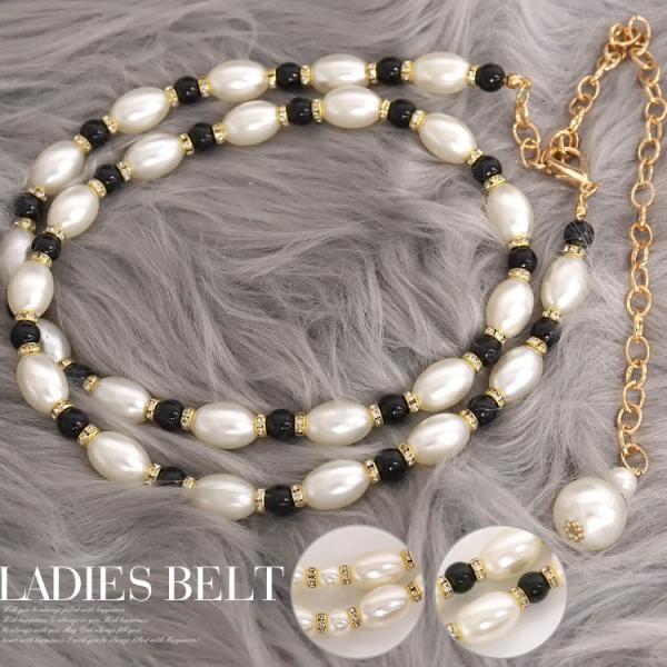 パール チェーンベルト 細い ベルト レディース オーバル ラインストーンリング装飾 帯締め ウエストマーク パーティードレス通販