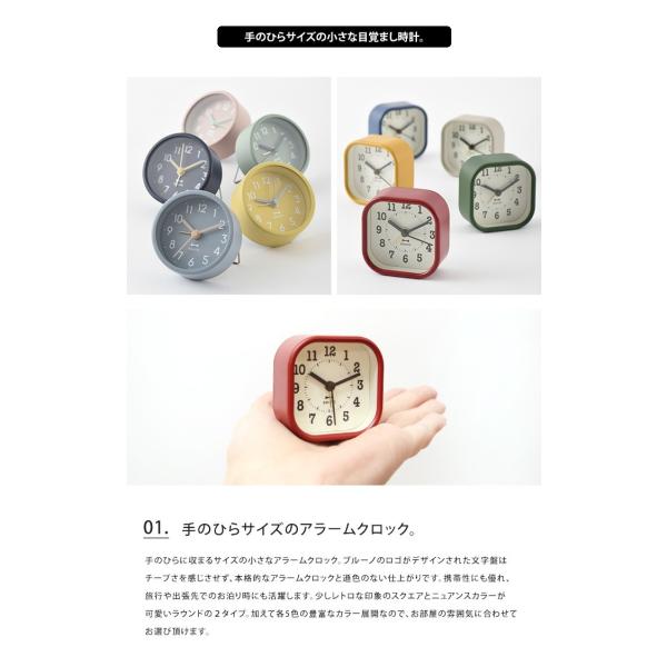 目覚まし 時計 ラウンド スクエア ブルーノ コンパクト かわいい 手のひら S 旅行 トラベル プレゼント ギフト 小さめ