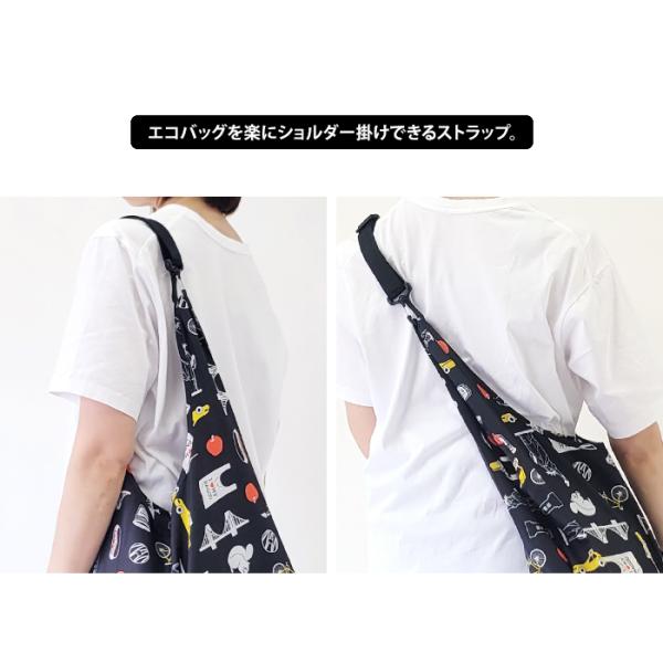 ロゴ入り エコバッグ エコバック ショルダーストラップ 肩掛け 斜め掛け 持ち手 レジ袋 お買い物バッグ 取り外し ベルト 便利 旅行 ハッピー ハッピー柄 スマイル