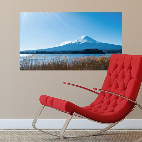ウォールステッカー 富士山 日本製 薄 芒 すすき 秋 湖 fuji 自然 壁紙 ポスター シール 絵画