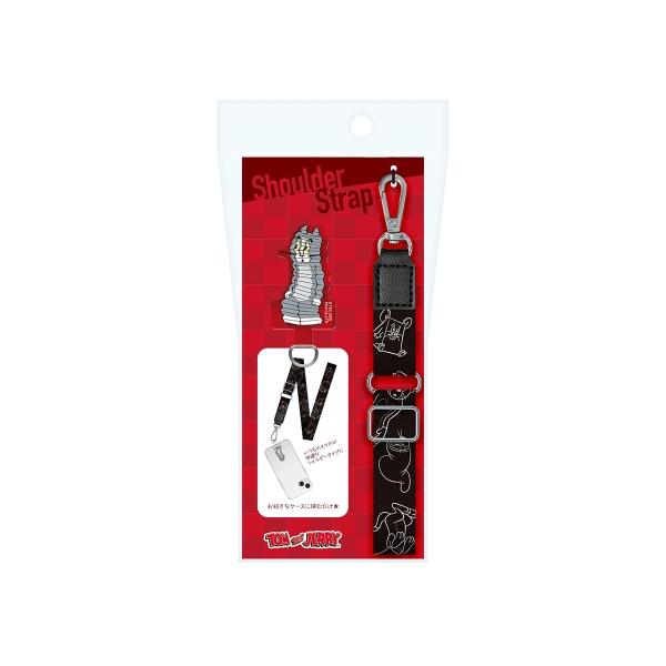 お気に入りのケースに挟むだけで快適なショルダータイプに切り替え可能な、「トムとジェリー」デザインのストラップホルダー付 ショルダーストラップです。