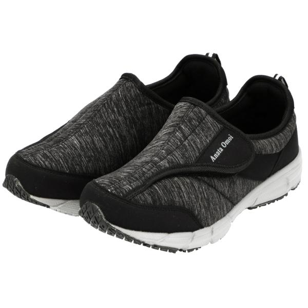 ☆ ブラック ☆ 25.5cm 介護シューズ 男性用 通販 メンズ 4E リハビリシューズ ルームシューズ 室内 病院 スリッポン 施設 紳士靴 介護用