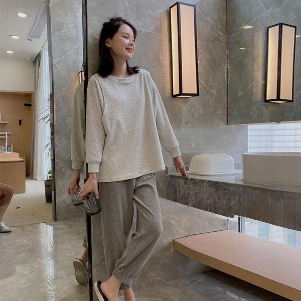 ☆ グレー ☆ Lサイズ ☆ マタニティールームウェア 上下セット 授乳口付き マタニティパジャマ 長袖 マタニティ 産後 ルームウェア